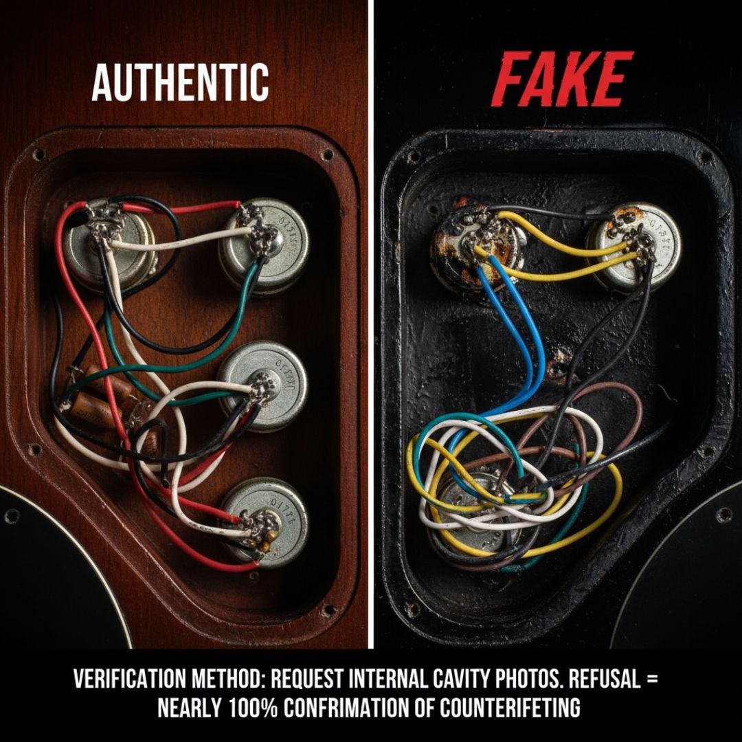Authenticating expensive vintage guitars requires diligence, expertise, and often professional assistance. The average loss from counterfeit purchases ($3,200) represents just a fraction of potential losses on high-value instruments.